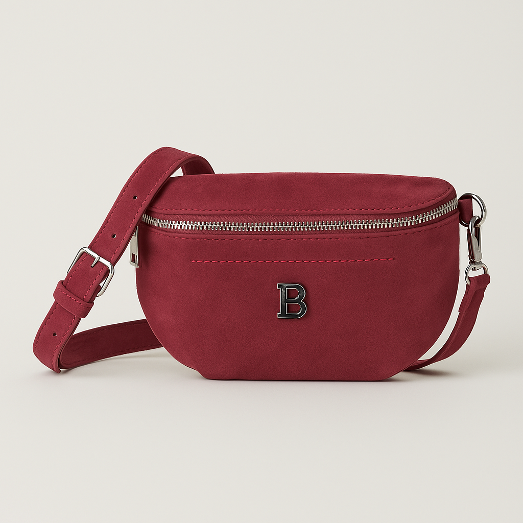 BY O LA LA / Burgundy Suede Belt Bag – “B” Edition