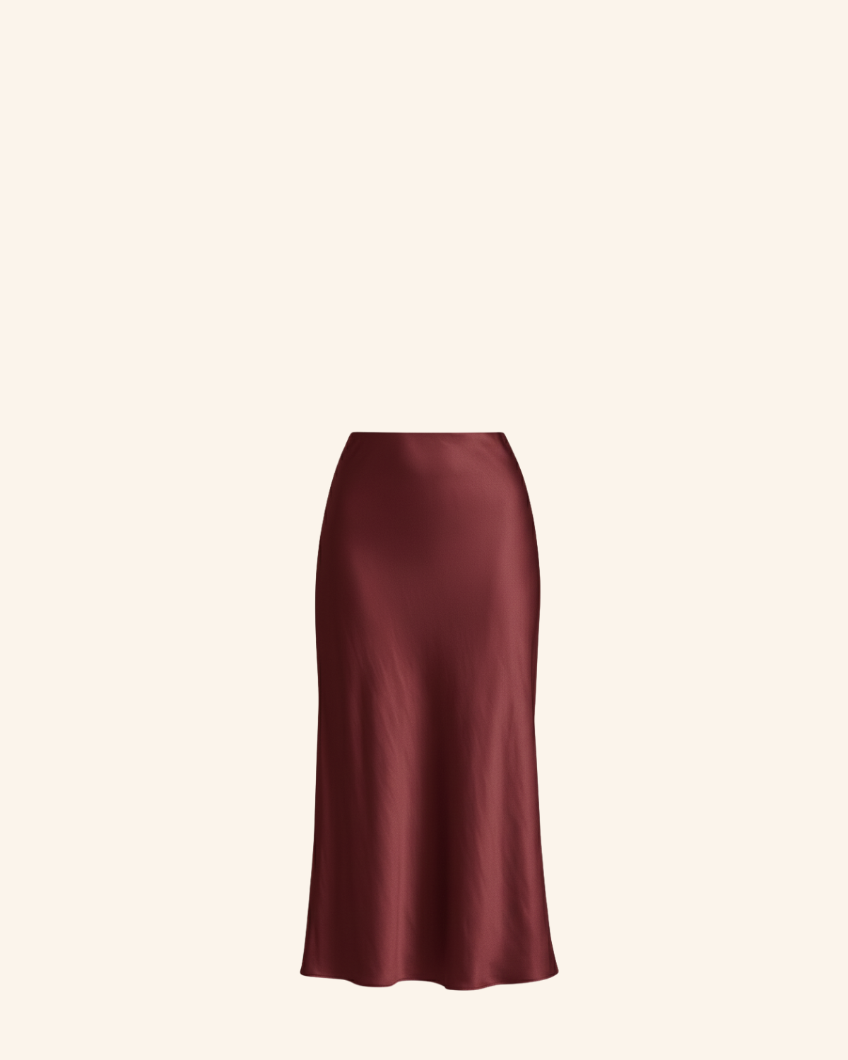 LUMINA / Burgundy Satin Midi Skirt – Bias Cut Elegance