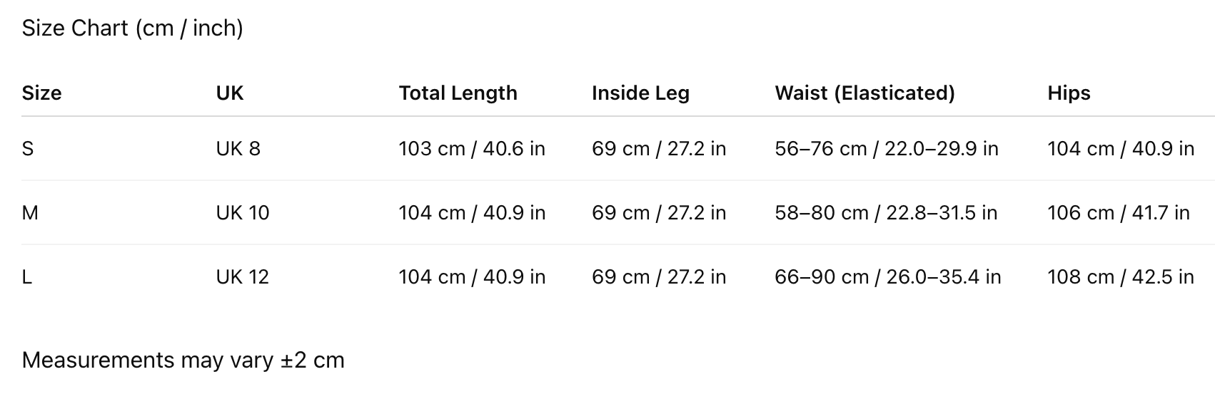 - Wide elasticated waistband